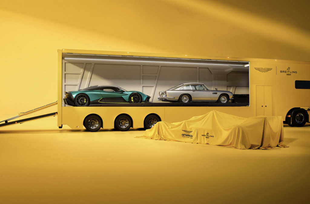 Les parallèles entre les deux marques remontent aux débuts de l’automobile. Léon Breitling présente la Vitesse en 1907. Ce chronographe est le premier à mesurer des vitesses atteignant jusqu’à 250 miles ou kilomètres par heure. L’appareil est si précis qu’il est adopté par la police suisse pour dresser les premières contraventions pour excès de vitesse. Quelques années plus tard, en Angleterre, Lionel Martin et Robert Bamford testent leur véhicule fabriqué à la main lors d’une course déterminante sur une pente raide et crayeuse appelée Aston Hill. La voiture l’emporte alors, et le nom perdure depuis.
