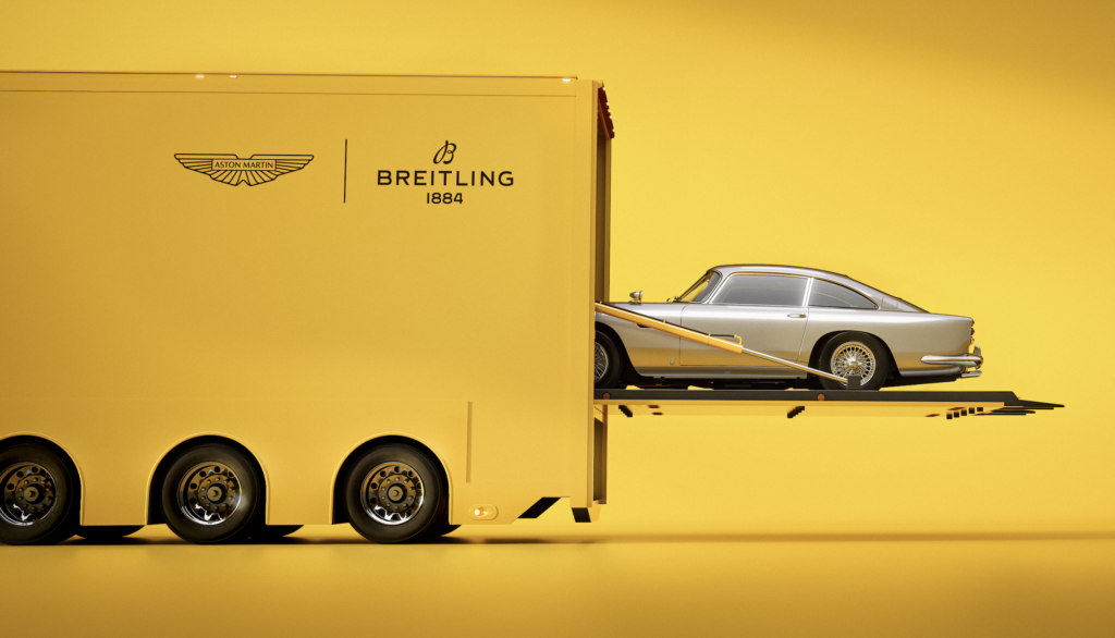 Dans les années 1960, les deux marques deviennent des symboles de style et d’ingénierie moderne. Willy Breitling, petit-fils du fondateur, s’affranchit de l’austérité de l’horlogerie d’après-guerre avec une autre montre, la Top Time, un chronographe destiné à une nouvelle génération d’amateurs de vitesse et de mode. Lorsqu’elle apparaît au poignet de Sean Connery dans Thunderball (1965), en tant que première montre gadget modifiée par Q dans la franchise James Bond, elle devient alors un emblème de l’époque. L’emblématique DB5 d’Aston Martin fait la même chose sur quatre roues dans Thunderball, après ses débuts dans Goldfinger (1964). Apparaissant tous deux dans le même film, les deux chronographes contribuent à la fascination culturelle pour l’univers de l’agent Bond, où la sophistication côtoie la vitesse et les intrigues high-tech.