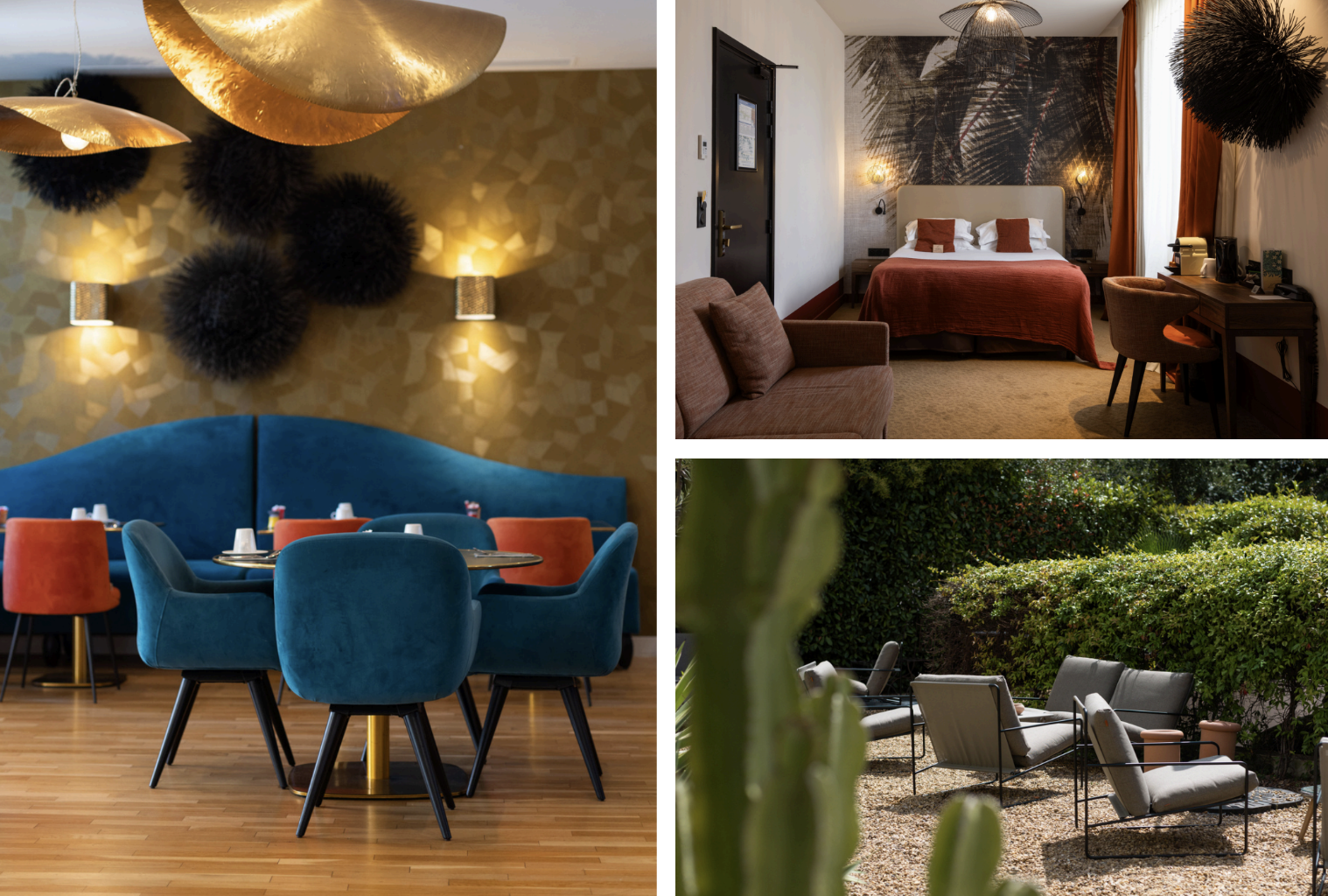 Ancien hôtel particulier de style Belle Époque, il dispose de 46 chambres et suites réparties entre le bâtiment principal, sur 4 niveaux, et son annexe, baptisée l’Atelier. Entre inspiration jungle, art graphique et papillon, toutes les chambres sont climatisées, équipées d’un mini-bar, d’un coffre fort, d’un accès à internet gratuit et d’une télévision à écran plat. Côté salle de bain, des sèches cheveux, des peignoirs, de grandes serviettes et des produits d’accueil signés NUXE complètent l’offre.