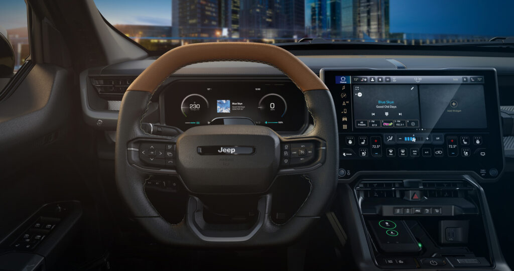 L’intérieur de Nouvelle Jeep® Recon est conçu pour l’aventure, où la robustesse rencontre l’innovation. Inspiré par l’héritage tout-terrain légendaire de Jeep®, l’habitacle associe des matériaux durables et prêts pour les sentiers à des rangements astucieux et une technologie de pointe, offrant un espace à la fois fonctionnel et tourné vers l’avenir.