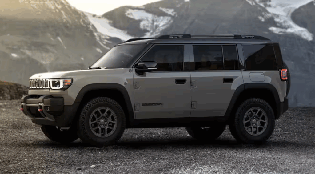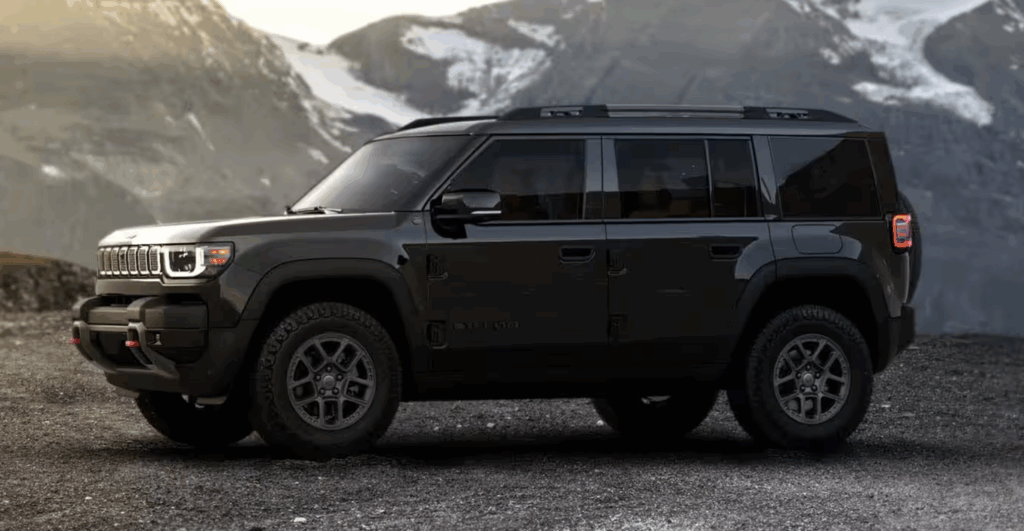 Des accents Noir Brillant sur la calandre, les montants et les encadrements de vitres, ainsi qu’un toit Noir Brillant disponible, ajoutent un contraste visuel. À l’arrière, des feux LED inspirés du Wrangler et un hayon pivotant accueillant une roue de secours de taille normale – une exclusivité dans le segment – renforcent son caractère.