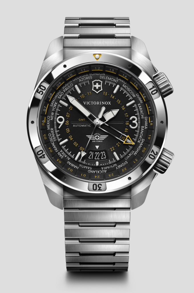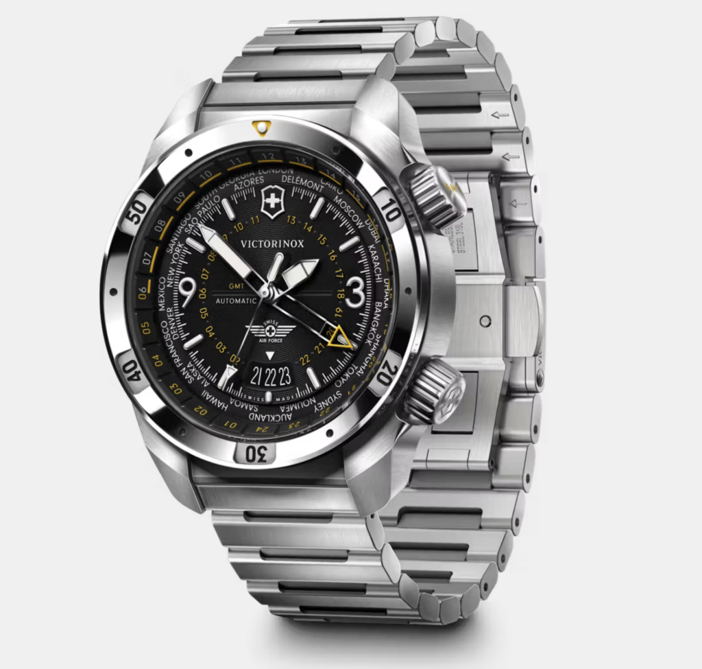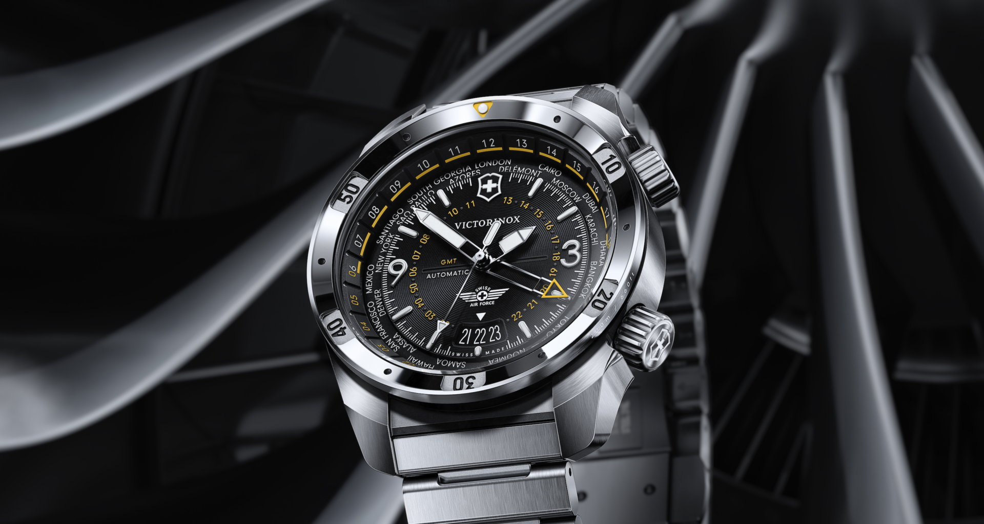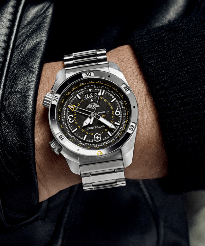 Victorinox Air Pro GMT Automatic, une montre de voyage idéale qui illustre l’engagement de la marque envers un savoir-faire d’exception et un design suisse raffiné. La nouvelle collection Air Pro est conçue pour les professionnels qui jonglent avec aisance entre travail et voyages, grâce à des fonctionnalités pensées pour faciliter leur mobilité moderne.