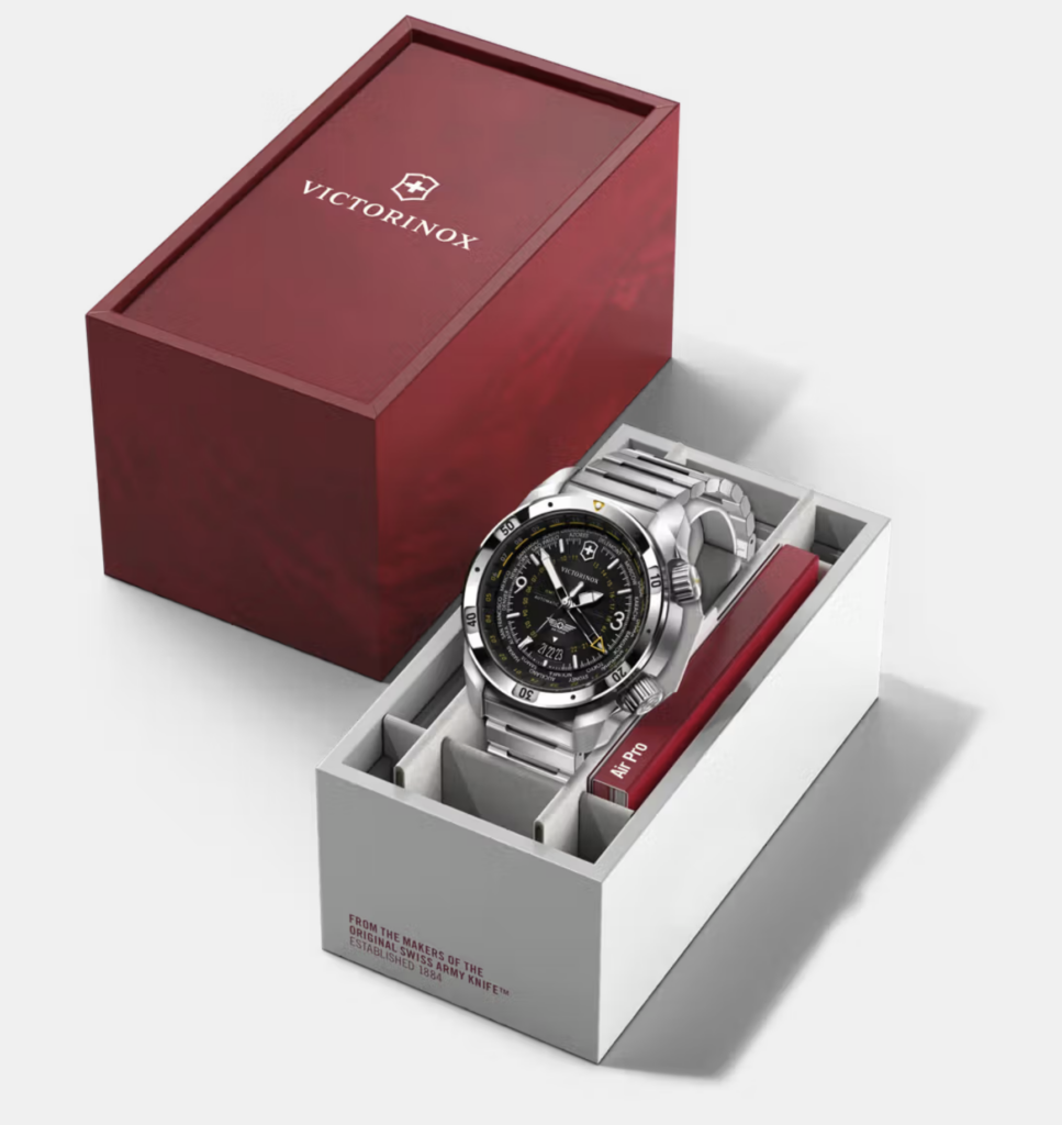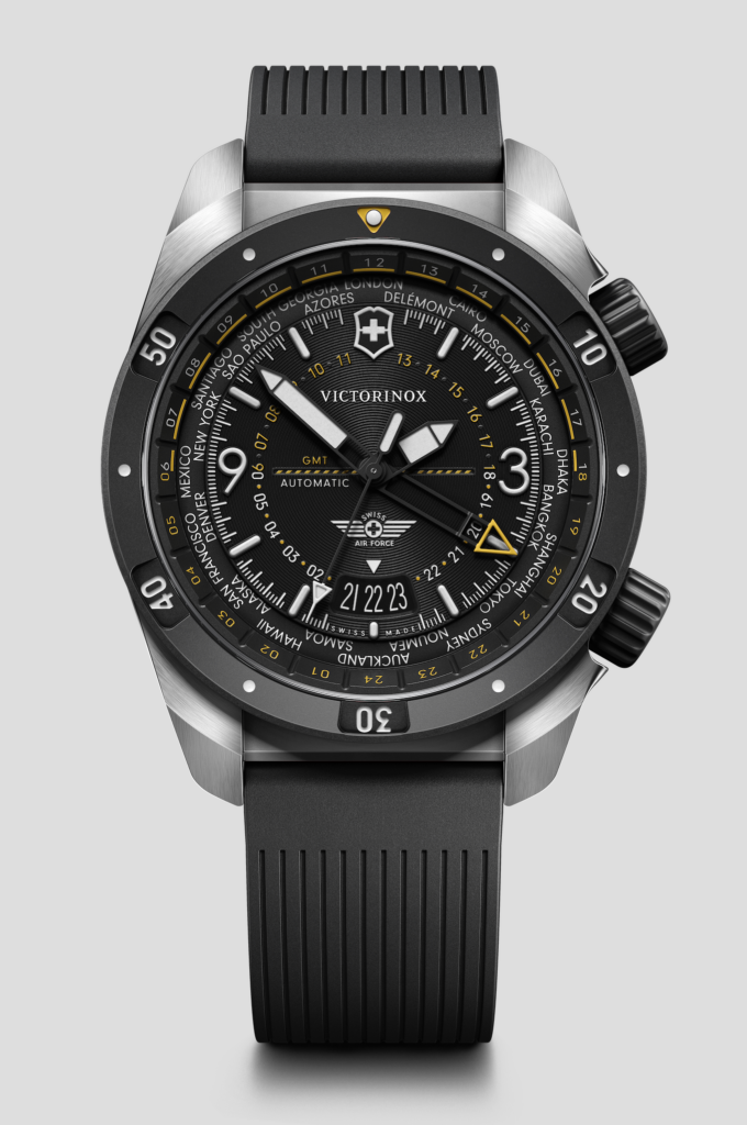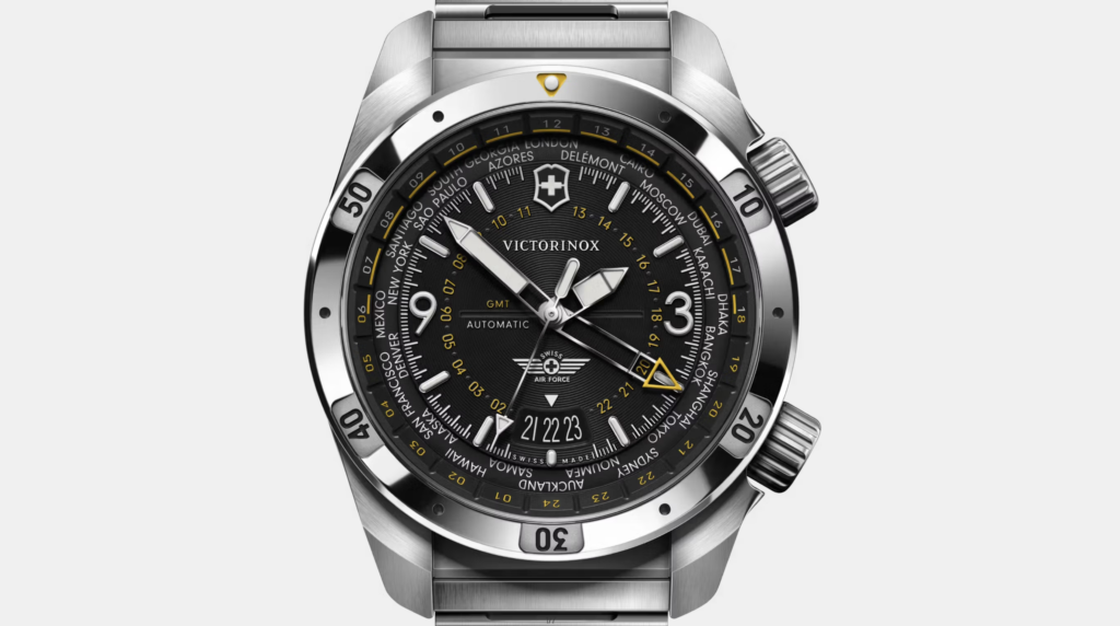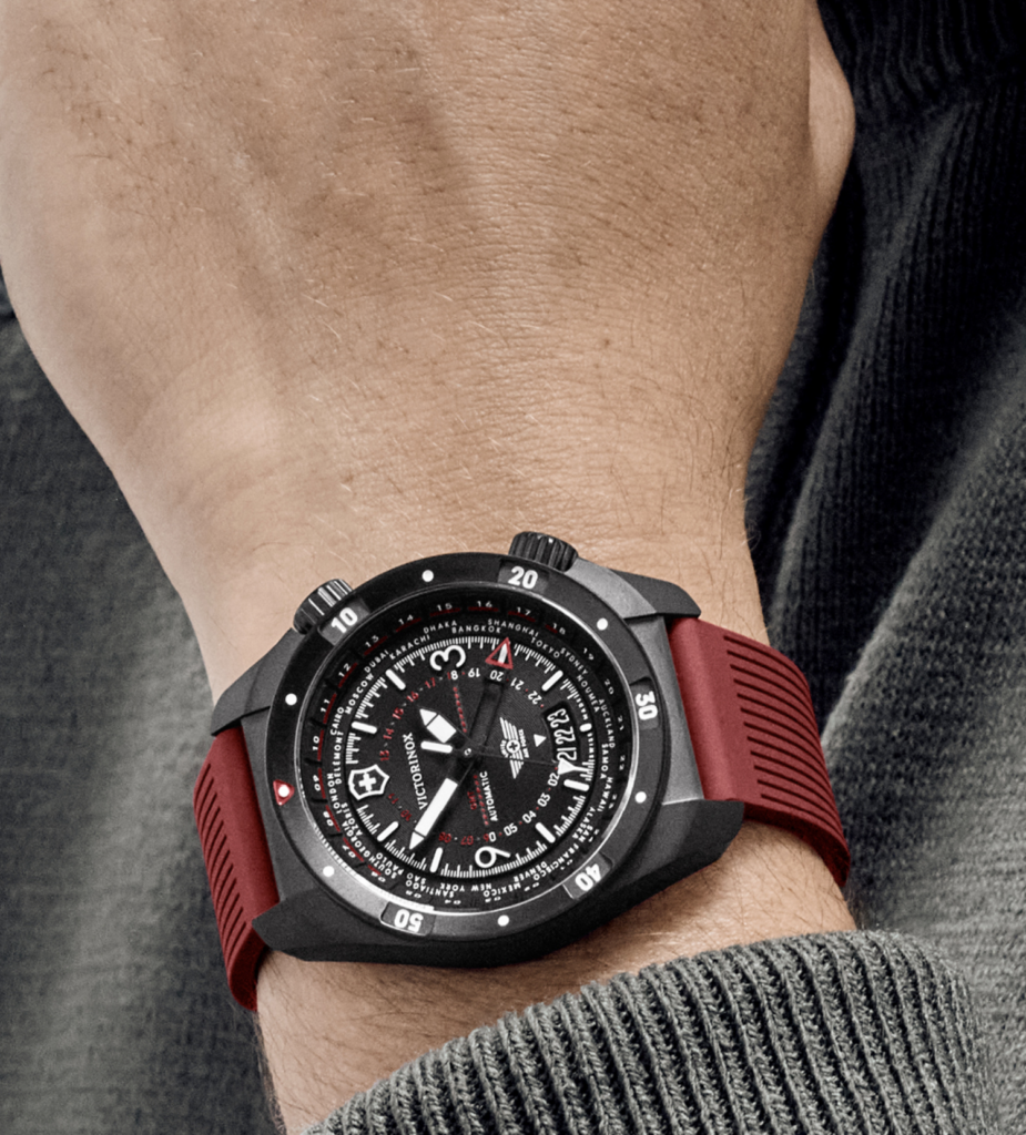 Victorinox Air Pro GMT Automatic, une montre de voyage idéale qui illustre l’engagement de la marque envers un savoir-faire d’exception et un design suisse raffiné. La nouvelle collection Air Pro est conçue pour les professionnels qui jonglent avec aisance entre travail et voyages, grâce à des fonctionnalités pensées pour faciliter leur mobilité moderne.